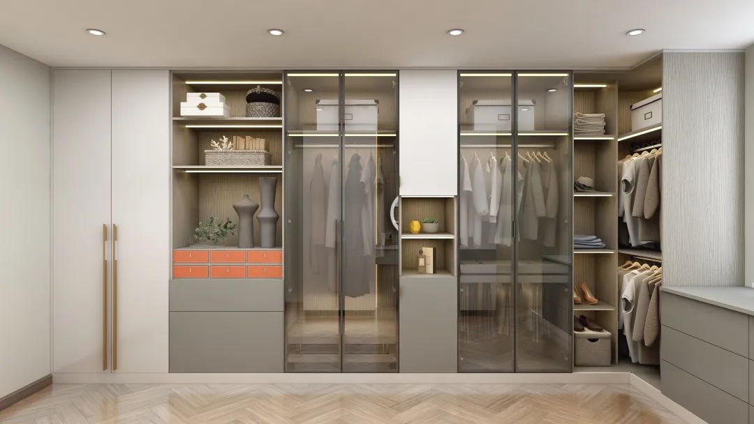 独立衣帽间色调柔和,造型简约