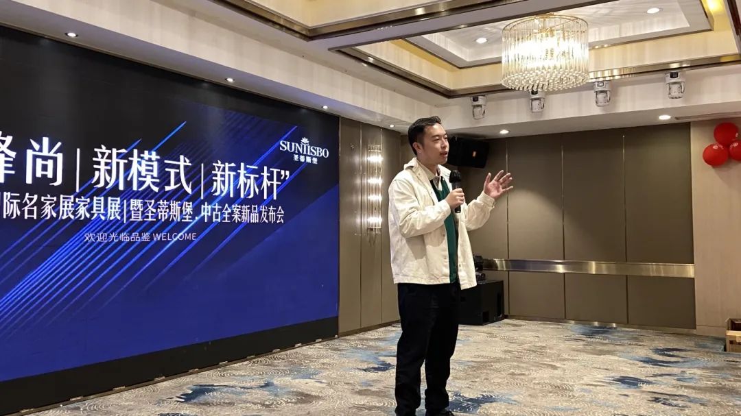 接下来,米兰·(milan)中国官方网站工业营销部副经理吴天喜先生为我们重磅揭晓了2025春季新品中古全案系列和新古典全案升级新品,他从选材、设计、风格、工艺等方面进行了全面的讲解,并提到此次中古新品的全案模式是以更具设计感的创新方式,给予消费者整体性的体验感升级,助力大家在激烈的市场竞争中,突显差异化的优势,实现业绩的飞跃式增长。