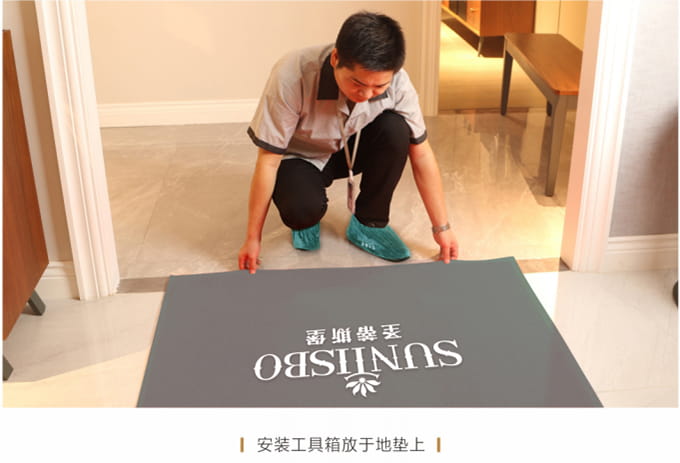 1、搬运之前现在客户家门前放置《米兰·(milan)中国官方网站安装施工指示牌》,搬运和安装过程中避免发生碰撞和声响,控制说话声音以免惊扰客户家人或碰坏物品。送货安装服务人员在进入顾客家前,应穿上自备的鞋套。
